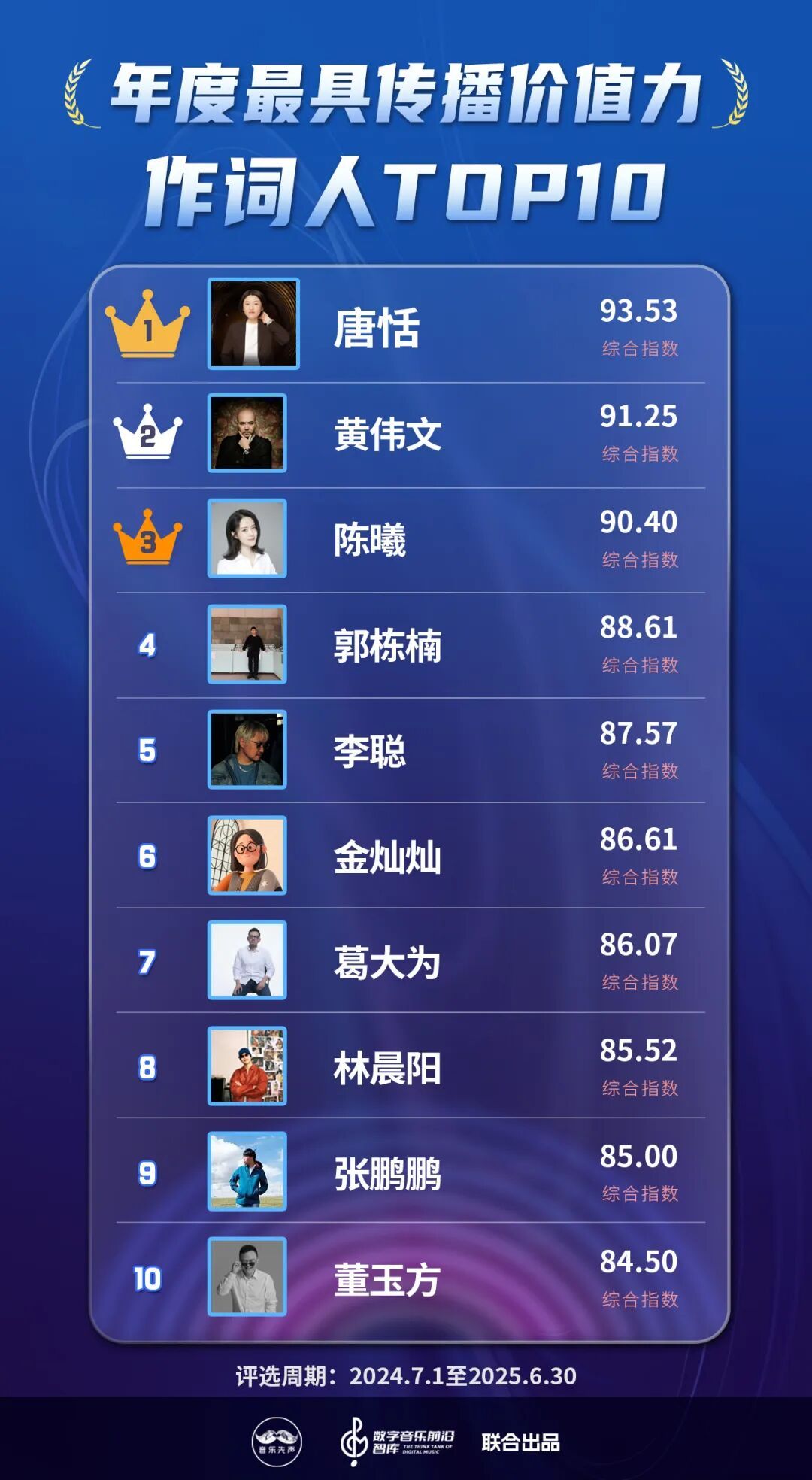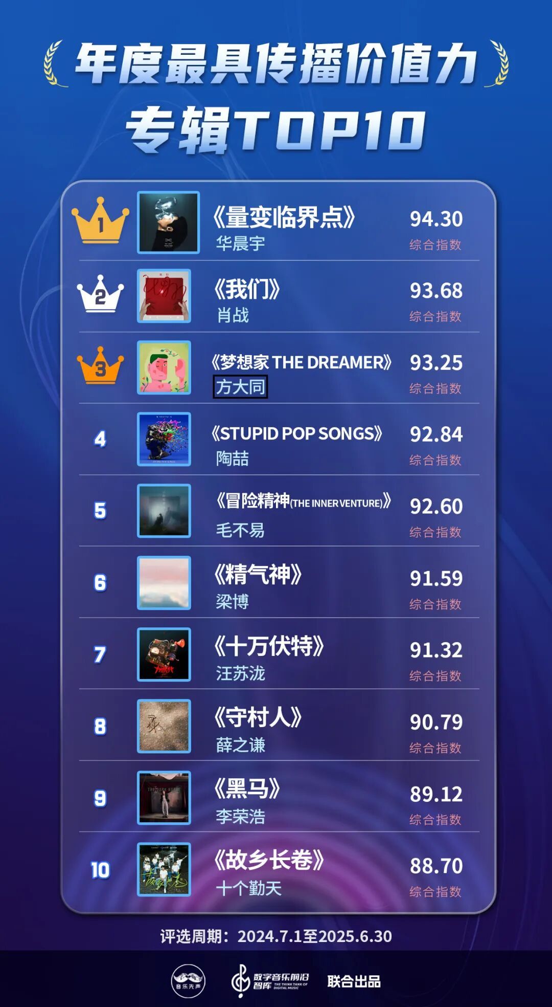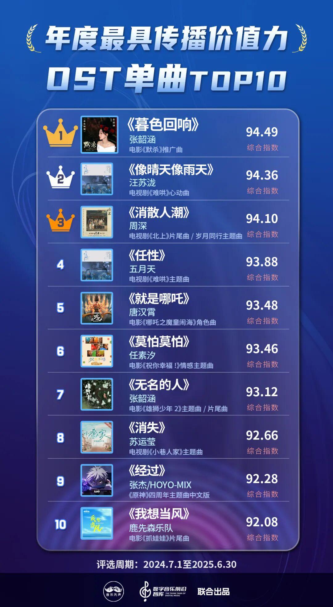 现在,国表里的音乐类榜单大体不错分为数据向和价值向,而《2025中国数字音乐传播价值力榜》则概括考量了这两大维度,以尽可能真实全面反应数字音乐产业的发展全貌,在流量大水中,寻找新的价值支点。
