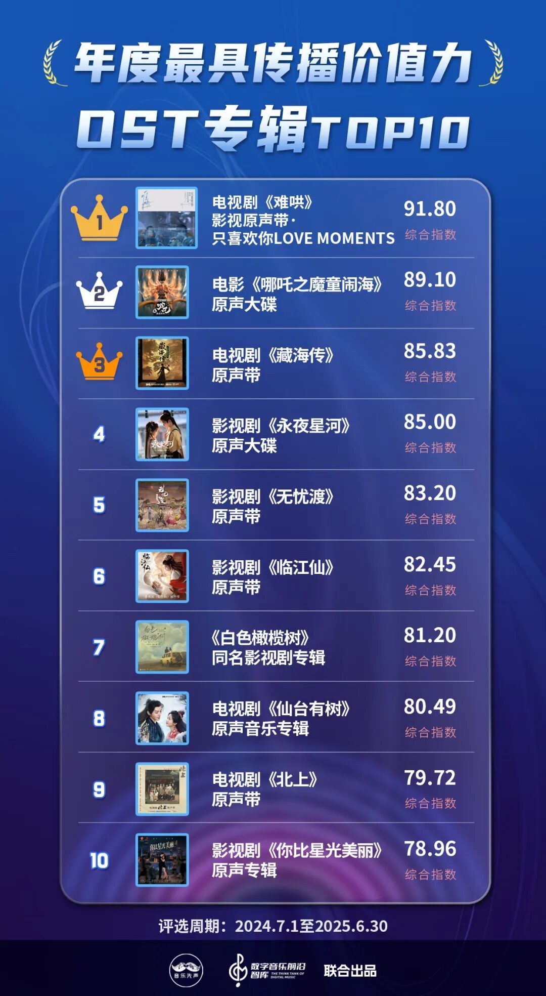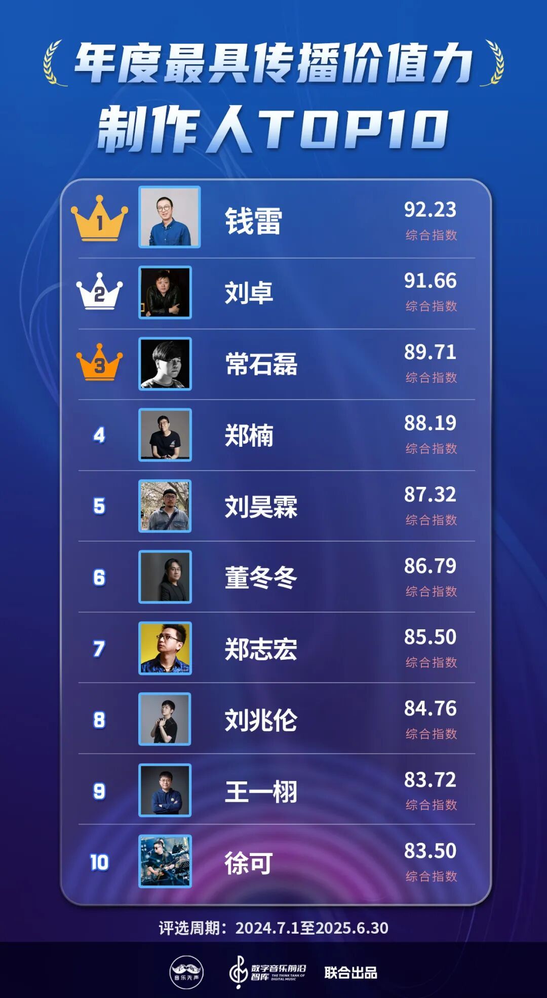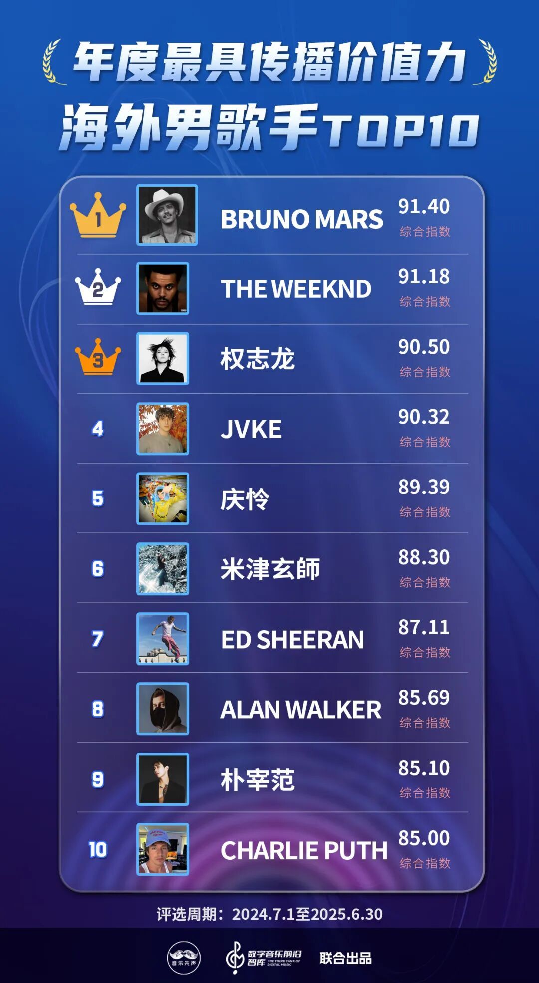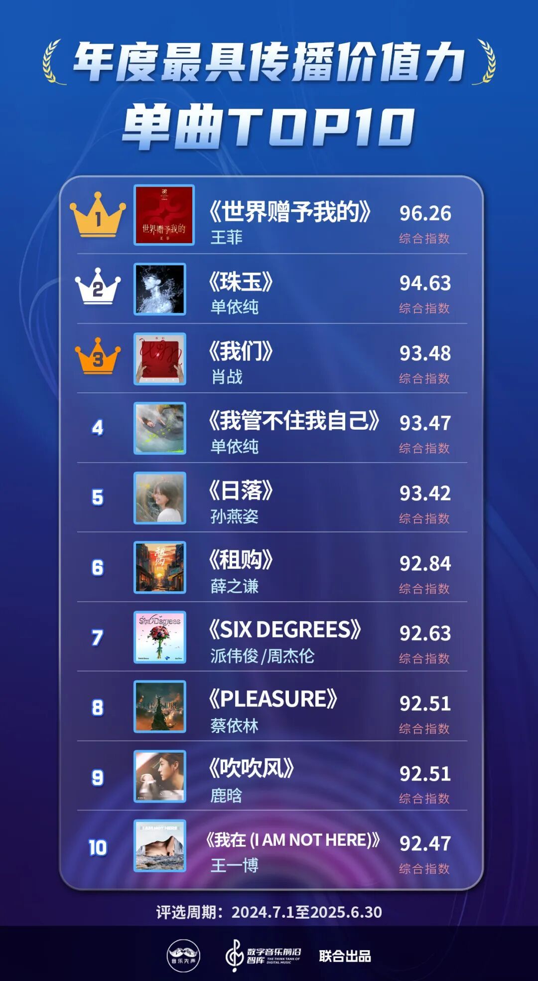 现在,国表里的音乐类榜单大体不错分为数据向和价值向,而《2025中国数字音乐传播价值力榜》则概括考量了这两大维度,以尽可能真实全面反应数字音乐产业的发展全貌,在流量大水中,寻找新的价值支点。
