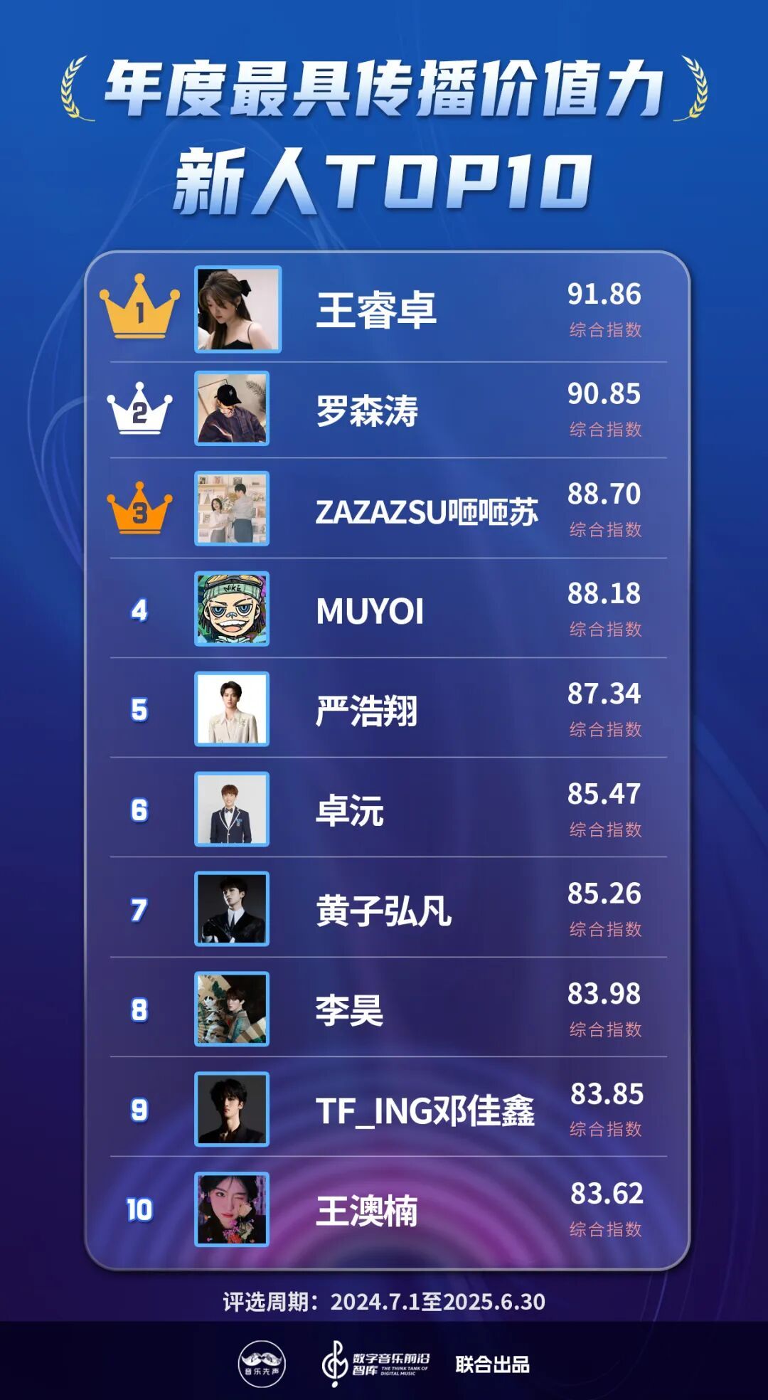 这份全面评估数字音乐传播价值的榜单,以中国数字音乐传播力指数为数据基础,同一数字音乐前沿智库的专科看法,概括商量艺术性、改进性、市集影响力、版权运营限度等多维身分,分为艺东说念主、作品、上演、案例4大类别、25项荣誉,旨在赏赐曩昔一年中在数字音乐边界具有卓著表现和传播价值的个东说念主、作品与面容。